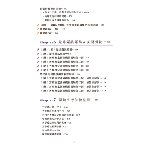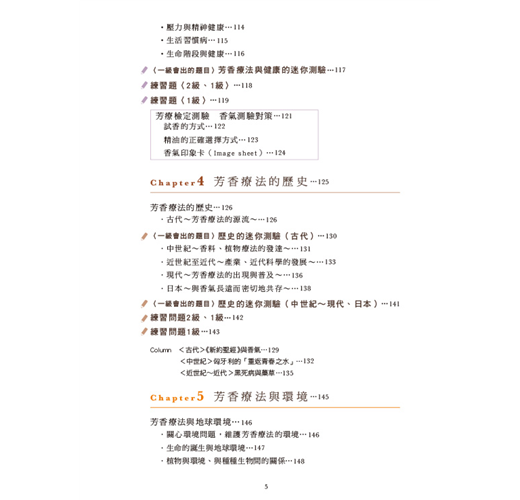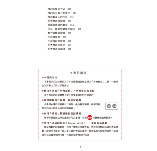 本書是以公益社團法人日本芳療環境協會主辦之「芳療檢定」二級、一級考生為對象之「教材試題集」。