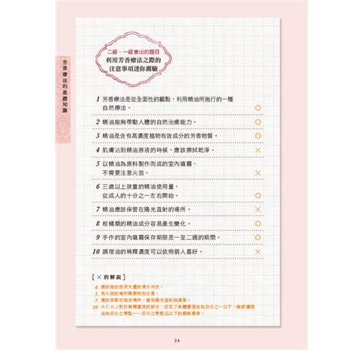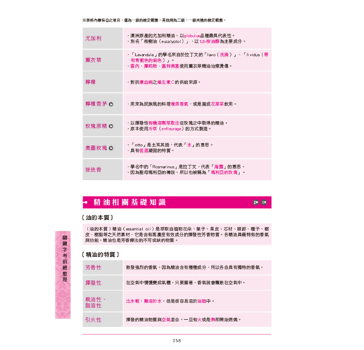 即使不是為了考試也能靈活運用其中的芳香療法常識~學習活用書中出題範圍內的精油,相對也學到作廣泛的30種芳香用油。