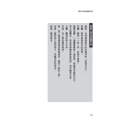 相信我,這可不是開玩笑。隨便問一個有經驗的現場銷售員,任誰都會這樣說:「不用懷疑,我當時掌控了全場的空氣!」