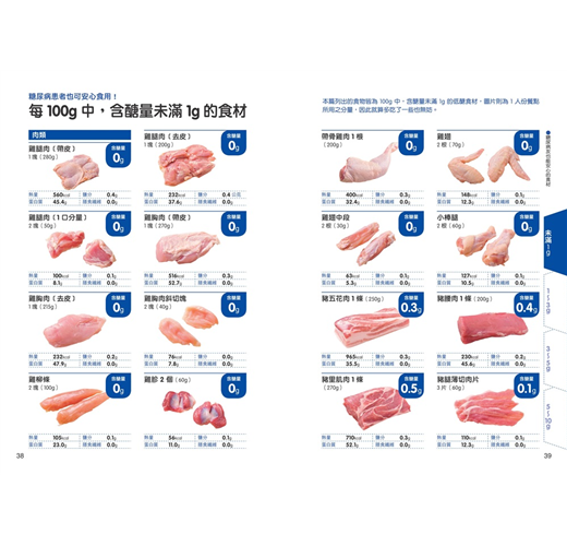 本書整理市面上常見的各式食材、國人常吃的料理及外食常點的食物等,標出醣分、卡路里、鹽分及蛋白質,若你需要控制飲食,也能透過本書幫助達成目標,有效掌握血糖、血壓、體重等關鍵數字。