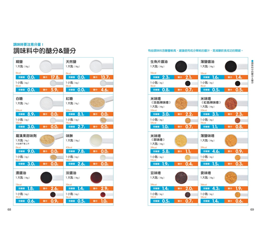★【調味料一覽表】將常用調味料的醣分&鹽分列出,避免用量過多,有效控制使用量
