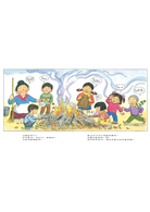 本書原文為日文。在日本,有庭院的人家中因為秋冬落葉甚多,故會將其聚集點火燃燒,藉此不僅能做土壤的養分,同時還可以燒烤用鋁箔紙包裹好的食物,最常見的便是烤地瓜了。在台灣,雖然已很少見人用如此傳統的方式烤地瓜,畢竟除非有廣大的農地,否則的確難以實行。但在假期時節,若父母能帶著孩子一同去農家散步走動,有些地方也能體會到傳統的烤地瓜樂趣呢!