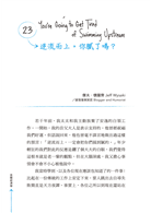 2.各章篇幅小而精,含括扎實的建言、典範與靈感,穿插有趣的插畫、「Act on This」專欄,帶給你啟發,也逗你發笑。對於網路時代長大的讀者,讀來輕鬆又有料。