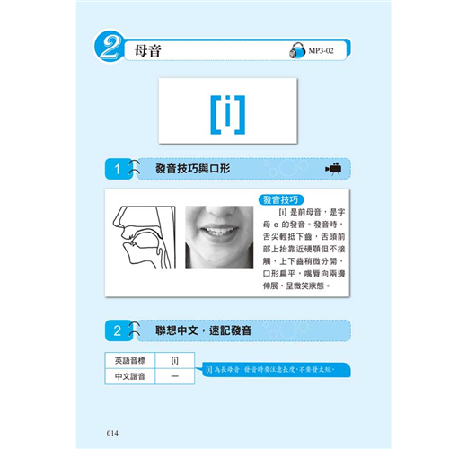 真實口形圖示範,搭配發音技巧解說與諧音,加上大量單字發音練習,多管齊下,矯正英語發音,讓你說英文更有自信