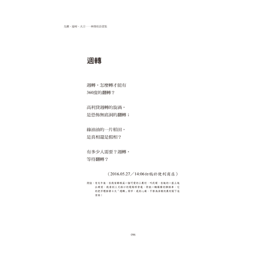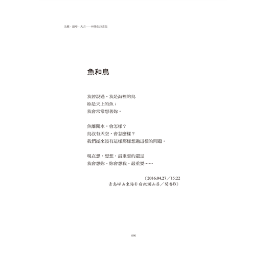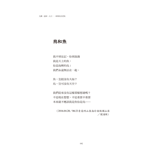這就是林煥彰,一個不曾停下手上的筆、不願被歲月扯住步伐的詩人。」──陳燕玲