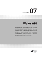 路、神經網路、文字分類和時間序列分析及預測;第7 章介紹Weka API,介紹如何使用Java 原始程式碼來實現常見資料採擷工作的基礎知識,並列出一個展示如何進行資料採擷的綜合範例;最後一章透過對一個學習方案的原始程式碼進行分析,深入研究Weka 學習方案的工作原理,為開發人員提供一個撰寫學習演算法的技術基礎。