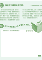 繪本就是要從孩子的心出發,當你用孩子的角度看每件事情時,會發現到世界就是如此的無限可愛。這個繪本的「鼻屎」在生活中一點都不可愛,孩子喜歡摳鼻孔更是每個爸爸媽媽最頭痛的事情。但鼻屎可是身體裡防禦病毒第一線的重要角色呢!這個繪本藉著主角鼻屎「摳吉」出現,而豐富了鼻孔森林與鼻涕海等神奇的想像世界。每個小小議題的樂趣,都會讓人不禁偷偷愛上這個愛冒險的主角「摳吉」,就讓我們一起跟著「摳吉」看看這個可愛的世界吧!