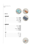 本書以詳細的步驟圖羅列整線夾、票卡夾、書套、名片夾、鑰匙套、托特包、拉鏈手拿包、拖鞋⋯⋯8種日日都會用到的隨身零件製作技巧,
