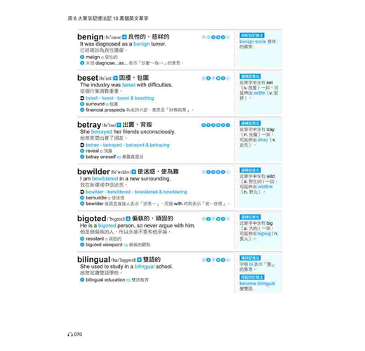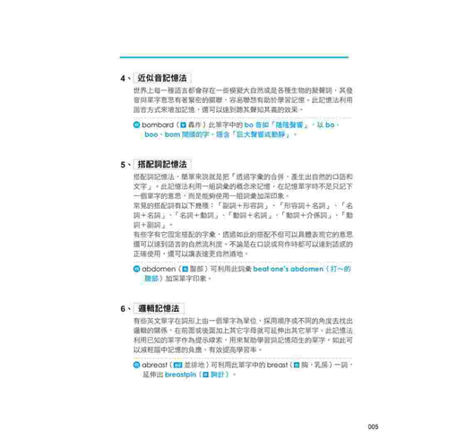 本書融合坊間單字記憶法書籍的學習重點精華,一本抵數本,讓你在學英文時更加得心應手。
