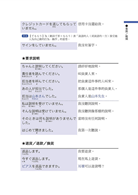 本書收錄多種選擇的回話,讓你達到最流暢的對答,比方說,當對方誇獎你時,你可以回:「いやいや。(沒有沒有)」、「とんでもない!(哪裡,別這麼說。)」、「そんなことはないよ。(沒有啦。)」、「大したことはしていませんよ。(我沒做什麼了不起的事。)」、「褒めすぎだよ。(過獎了。)」……等,讓你不侷限於一種套路,能夠自由地講出符合自己風格的對話。