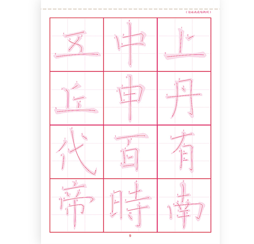 提供基礎運筆圖解與書寫筆順,適合初學者認識書法結構和練寫。