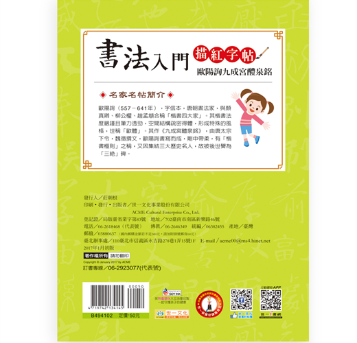 特收錄書法家原跡字帖,讓孩子於描紅過程中能直接研習該字體特色。