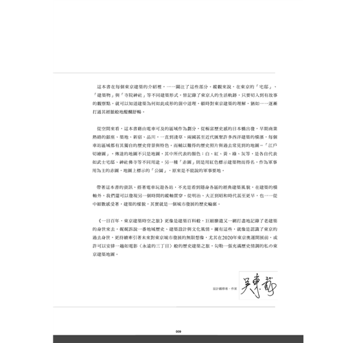 本書請到作家吳東龍作導讀,藉由不同時代的三幅地圖來觀察東京的變化,以線條獨特的江戶切繪圖與赤圖搭配現代地圖呈現無限新意,橫豎線條的差異帶出日新月異的東京面貌,透過簡淺的文字,揭開古老東京的面紗,看這樣一座繁華的城市是如何經歷百年時光仍屹立不搖。
