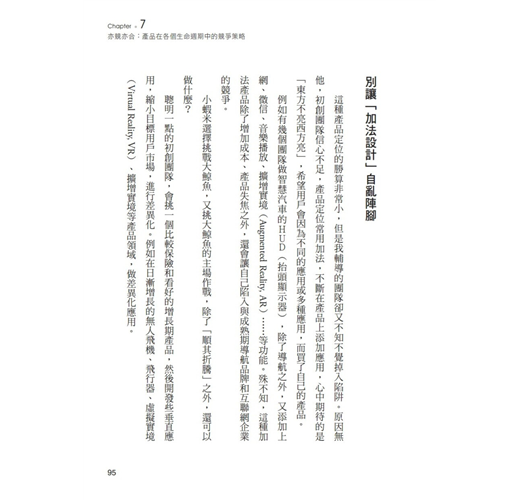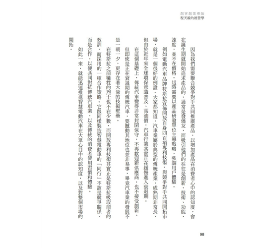 全書還包括對經營管理的看法,以及對台灣企業經營現況的建議,都是一針見血的言論,這是一本值得仔細閱讀的企業經營之作。