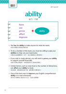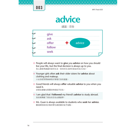 為了幫助自己與同學們能夠道地使用英語文,我針對這本書的內容,提供四種處方箋與大家分享:聽力練習、簡短造句、翻譯練習、看圖造句,希望能拋磚引玉、激發大家找出其他練習方式的靈感。