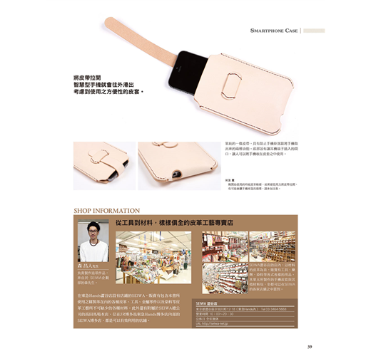 以柔和的感觸將無生命感的手機包起來,構造精簡的智慧型手機的皮套。將防止滑落的皮帶抽出,就能將手機順暢的拿出來,功能的設計也非常具有魅力。