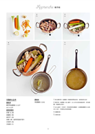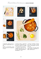 應用料理基礎中學到的技巧、製作方式等,有系統的介紹各種主菜、配菜、湯品等,精美的步驟分解圖更有助於了解製作過程。