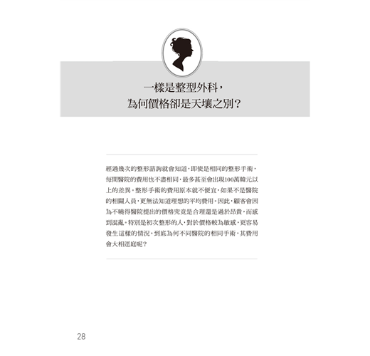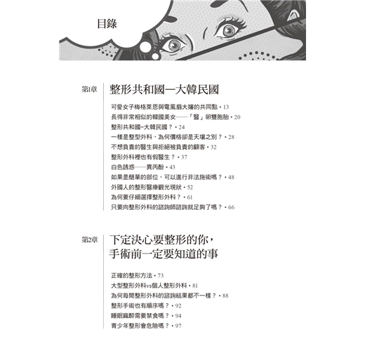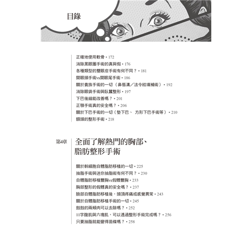 在這個擺脫不了外貌至上主義的現代社會,人人都希望自己往「美」的境界更進一步,然而,市面上的整形診所五花八門,不法的仲介與誇張的廣告充斥,大眾往往愈諮詢愈容易感到混淆,也不易判斷什麼樣的醫療小組才是好的醫療小組。因此,希望能藉由本書將資訊與更多人分享,一起討論出更多的好結論。
