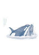 除了修文,插圖的編排應該也有所改變。調整為繪本形式,或許能帶出更多新境。於是,我又選了鯨跳、仰鰭、育幼、擱淺、深潛、吞食、沉思、凝視、沮喪,撫慰,以及跟虎鯨撞擊、對峙等代表性行為,完成十多張插圖,詮釋我的理解。加上其他動植物的輔助,藉由此一連續圖像的創作,我也再次享受,跟座頭鯨的對話。