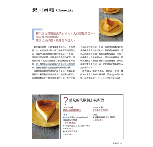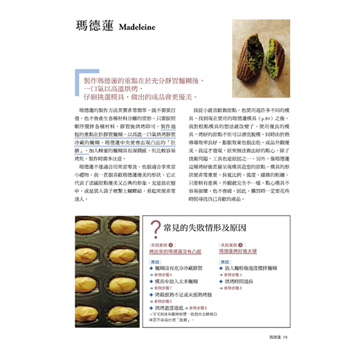 不過,一般的食譜只會寫出反覆試做後找到的結論,很少有機會告訴讀者「為什麼會是這樣」。其實,引導出結論的理由中,隱藏著非常重要的線索。然而,若是將這些內容全部寫出來,資訊量會非常龐大,尤其對初學者來說,閱讀起來會非常難懂。於是,福田老師從過去製作的多種甜點中,精選出其中十幾種最常做也最受大眾喜愛的拿手甜點,並盡量詳細寫出各個步驟的重點及原因。書中的食譜都是經過多次研究的成果,請各位一定要嘗試看看。