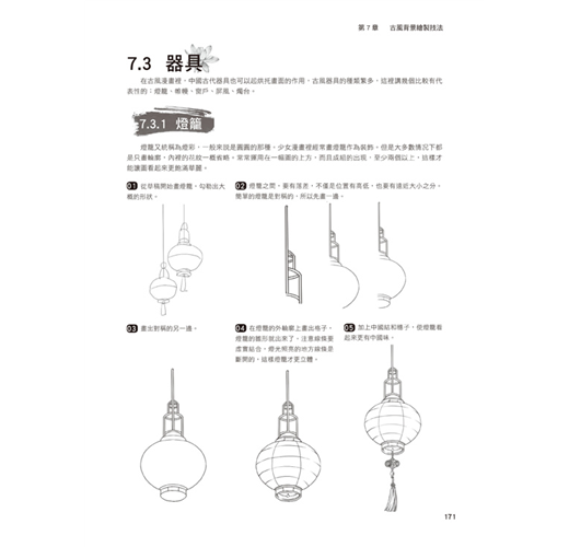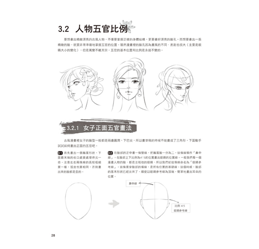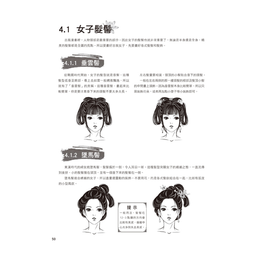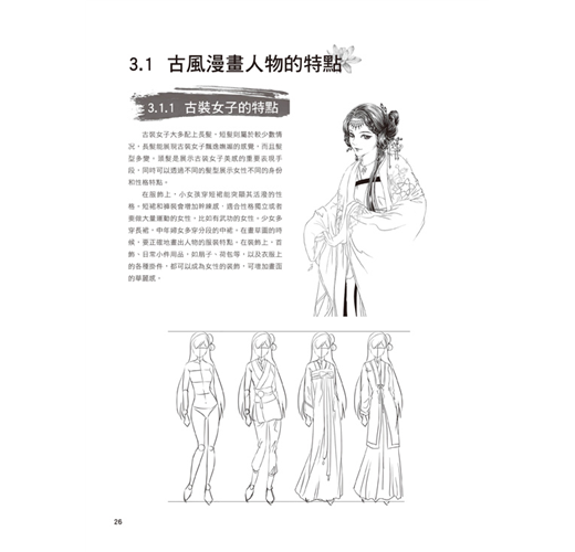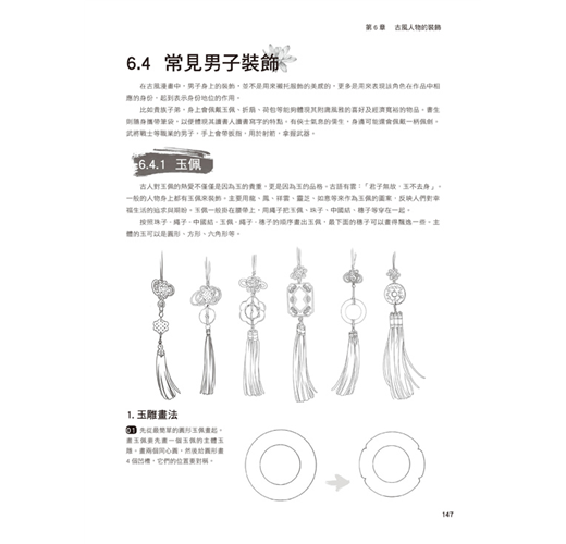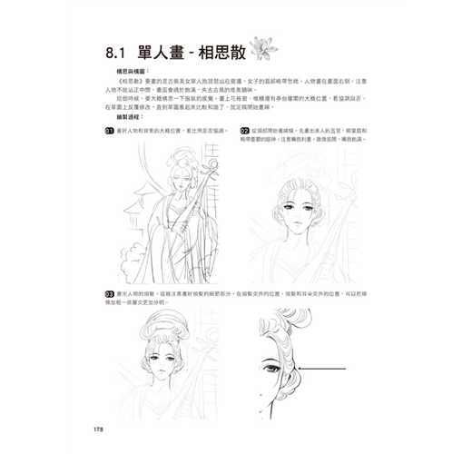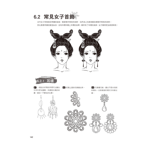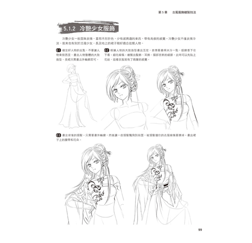 ◎:除了繪圖教學外,作者也講述了各朝代的髮型、服飾等的歷史背景,除了學到繪圖技巧也充實知識。
