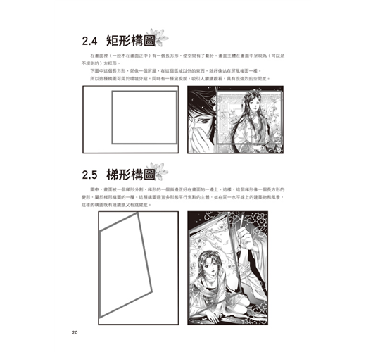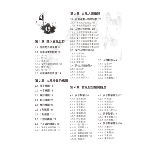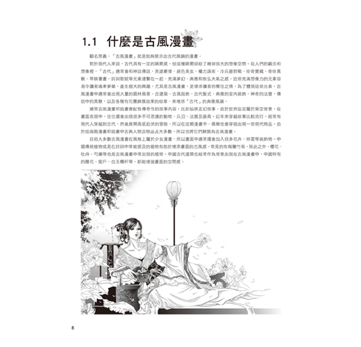 ◎:1~2章介紹古風漫畫基礎知識、線條表現和構圖方法。