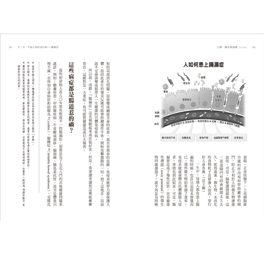 自二OO八年美國啟動人類微生物體計畫後,才驚覺人不管從皮膚、口腔到消化系統都充滿了細菌、病毒和噬菌體。尤其是胃腸道,就有一百兆左右的細菌,光細胞數目就是人的十倍,因此我們人類雖是這些微生物的宿主,但從比例上來看卻是不折不扣的細菌人!這為數眾多的細菌從人類出生後即一起演化成長且不離不棄,所以有學者認為是我們人類的老朋友。這些細菌不僅與維生素、膽塩、胺基酸、固醇類荷爾蒙等重要物質的代謝和合成有關,也和宿主的能量生成、骨頭發育、神經傳訊、免疫功能和體內病原菌多寡等息息相關。一旦這些細菌的數量和種類多樣性產生改變,除了胃腸以外,各式各樣的疾病,包括自體免疫(如氣喘、發炎性腸病)、心血管(如動脈硬化)、新陳代謝(如肥胖、糖尿病)、呼吸道、肝臟和神經及精神系統,甚至是惡性腫瘤,都會接踵而來。而造成這琳瑯滿目眾多疾病的共同理論基礎則是腸內的細菌,特別是益菌與壞菌的比例失衡後所引起腸上皮細胞通透性增加(即本書所謂的腸漏症),讓毒素和壞菌容易穿透,導致腸道及全身性的慢性發炎所致。