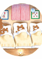 三隻小熊刷好牙、上完廁所、換上睡衣,用暖暖的棉被把身體包起來。