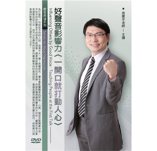 一個人的聲音,占了印象的大半要素。說話的音質、速度、節奏、音階、音量,以及強調重點的方式,都是影響溝通表達的關鍵元素。現代人容易因為口角產生衝突,或是因為語氣上的誤會而喪失了某些機會,都是因為疏忽了聲音的調整與運用所造成的!因此,學會用適當的聲音表情來說話,其實就是創造好運的開端。聲音訓練專家周震宇老師,用富有磁性的聲音、與豐富的授課經驗,融合幽默風趣又生活化的案例,開啟您的聲音表達潛能、教您如何運用聲音創造屬於您個人的影響力、溝通力與好形象!