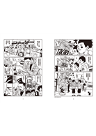 不過對我來說,松本大洋作品的特別之處並不只是對此主題的熱心經營,(美國超級英雄漫畫幾乎都將世界區分為好人聯盟和壞人聯盟不是嗎?)他的所有作品都不是因為那些角色類型而變得特別,而是因為他透過更深沉的人類視點顛覆了舊有的表現——這在《惡童當街》尤其明顯。松本大洋(就和我們一樣)知道人性並沒有完全的白和黑,世界是以各種不同濃淡度的灰色塗抹出來的。就舉《惡童當街》的舞台寶町為例吧:寶町就跟小白和小黑當作基地使用的生鏽舊車一樣,有過一段輝煌歲月,如今成為髒兮兮又危險的地方,占據此地的都是跟「光輝」呈現強烈對比的角色,如黑幫人士、酗酒者或更兇狠的人。但在此同時,寶町也是充滿活力、形形色色的生命都得以存續的地方。(松本大洋曾告訴我,他想把寶町表現成「打翻的玩具箱,裡頭有閃閃發亮的新玩具,也有被遺忘、壞掉的玩具,兩者混雜在一塊」。)