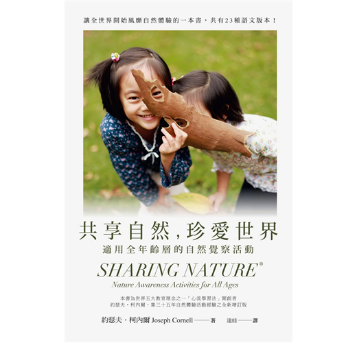 現在我為了紀念這本書出版三十五週年,而將原版手冊全部改寫更新。其中還加入了我在舉辦了數百場訓練課程後獲得的洞見。《共享自然,珍愛世界:給各年齡層的自然覺察活動》(Sharing Nature: Nature Awareness Activities for All Ages)除了收錄了《與孩子分享自然》第一及第二冊*中最受人們最喜愛、歡迎的遊戲以外,還加入許多新的遊戲內容。書中也納入擴充版的「心流學習法」,一種使教導自然成為愉悅的戶外學習策略。