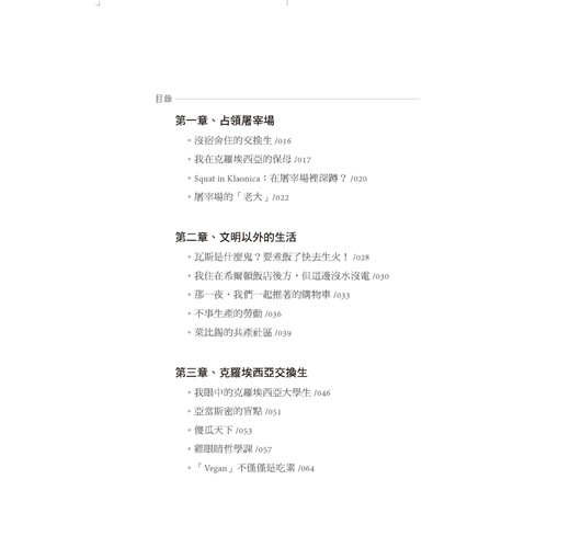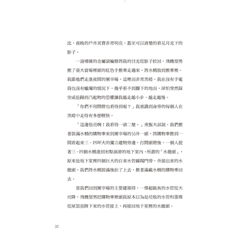 是怎麼樣的文化,可以讓這樣子的行徑變得理所當然?我完全不能接受一個生命 可以被如此地對待著,馬可也是。於是,我們重新開始吃肉。即使我們知道,這 些肉可能稱不上新鮮、可能被打了生長激素、抗生素或是瘦肉精,但我們沒辦法 就這樣讓牠們被丟在垃圾桶裡。對我們來說,將這些肉帶回去好好料理然後吃掉, 是我們當下能為這些生命帶來最後一絲尊嚴的唯一方式……