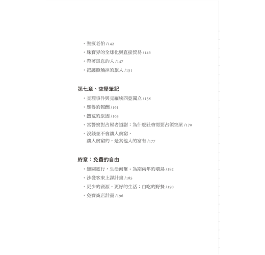 回到台灣後,我開始撰寫那些人們的生活方式,我開始想在台灣各地成立無數個小小的免費商店,並將免費商店那種以無條件贈送來取代金錢或是交換的概念套用到東西以外的其他地方。從東西到食物、技能、交通以及住宿等等,其實都有不用花錢、不用消耗資源、而且很好玩的替代方式的。