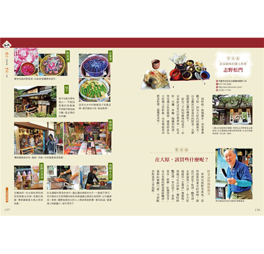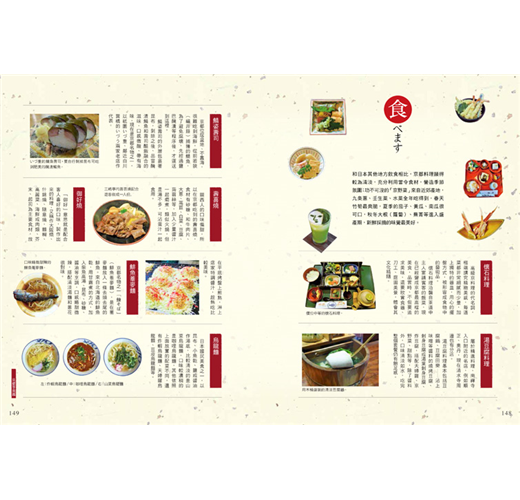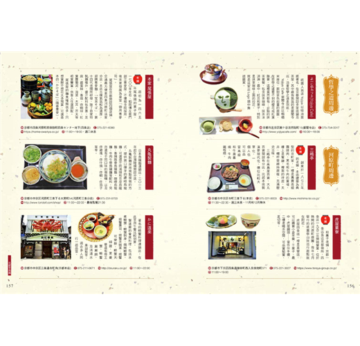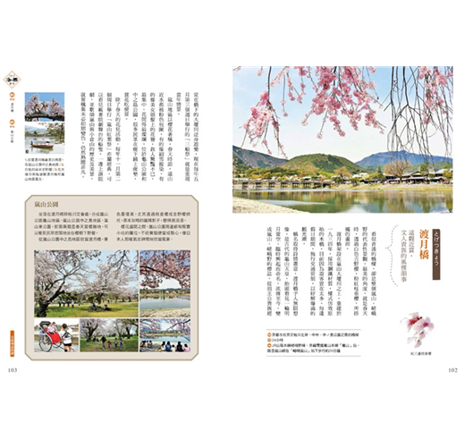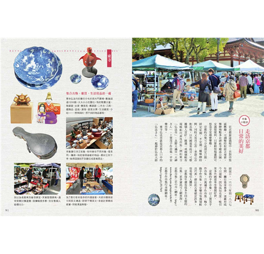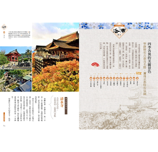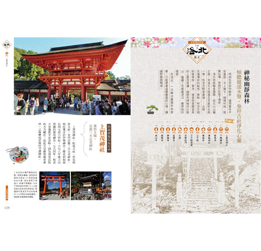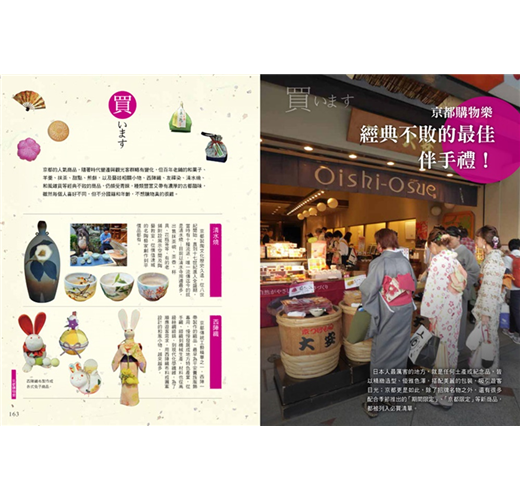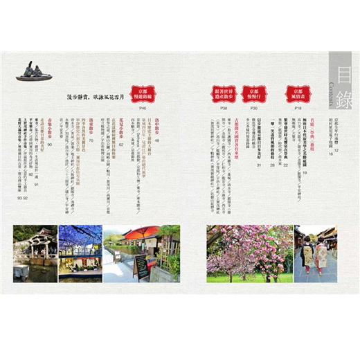 書中規劃出洛中、洛東、洛西、洛南、洛北,共五條重點路線散策路線,一次看完世界遺產、時令花見、市集巡禮,同時體驗京都風味美食和購物樂趣。