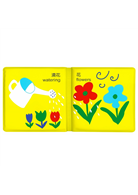 這本書也能做為寶寶的第一本語文書,書中每一頁的圖畫具體簡單,配上與水有關的單字,例如:鴨子(ducks)、河馬(hippo)、青蛙(frogs)、澆花(watering)……中英雙語對照,幫助寶寶同時吸收、學習兩種語言,認識生活中常見的事物,是洗澡時最合適的語文書。