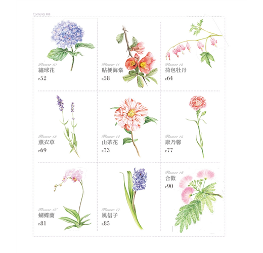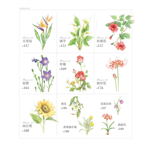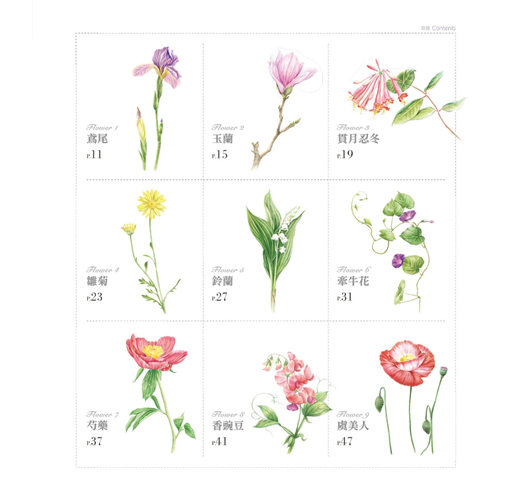 書中的38種花卉姿態豔麗,各具特色,從百合的優雅、扶桑花的熱情、玉蘭的純淨,到鈴蘭的娉婷,這些千姿百態的花兒展示出一個美妙動人的植物世界。透過色鉛筆靜謐恬淡的筆觸,讀者不僅能因此對色鉛筆產生興趣,還能逐漸養成細心觀察的好習慣。