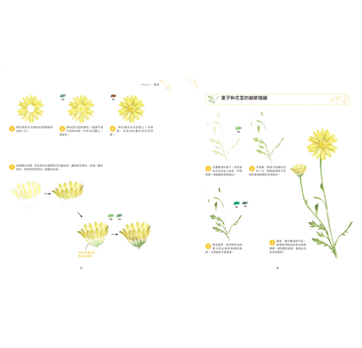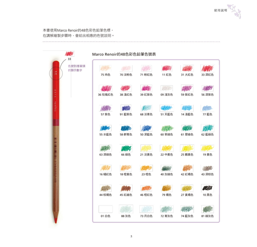 ☆ 步驟解說詳盡清晰,並精確附上色鉛筆色號供讀者參考