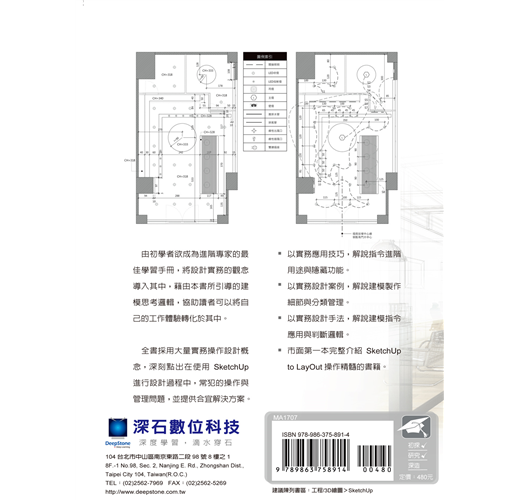 全書採用大量實務操作設計概念,深刻點出在使用SketchUp進行直接設計過程中,常犯之操作與管理問題,並提供合宜之解決方案。