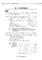 操作步驟詳細精解,圖文對照,編排方式清晰易讀,圖解標示操作先後順序,學習過程不致產生錯誤。