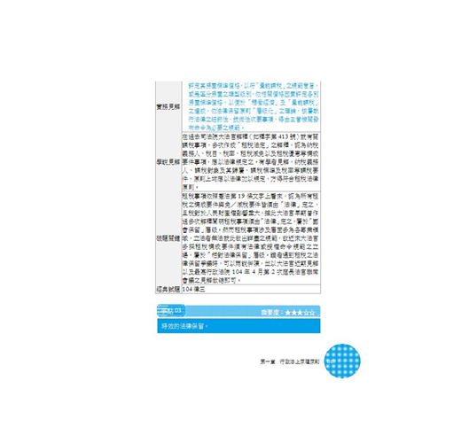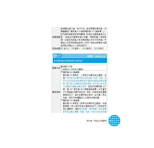 整理考試重要爭點,輔以關鍵法條、實務見解、學說見解、觀念說明及破題關鍵等項目,幫助考生輕鬆熟悉爭點、快速掌握解題關鍵。