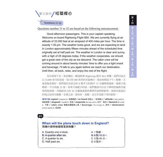 全新6回聽力+閱讀,反映最新命題趨勢,