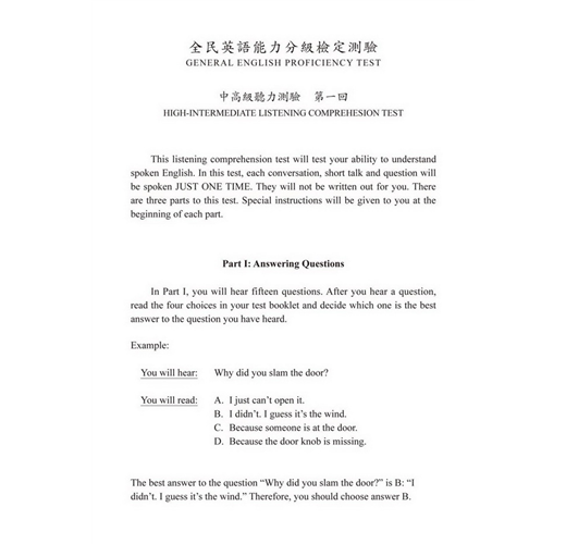 你知道嗎?全民英檢中高級的聽力、閱讀測驗,平均只有不到五成的考生能夠通過!即使是多益 900 分以上的高生,在全民英檢也往往鎩羽而歸,大喊「怎麼會這麼難」!原因就在於,全民英檢中高級的出題範圍相當廣,閱讀測驗包含文化、歷史、社會、科學等各種題材,也會不時出現常用範圍以外的單字;聽力測驗的雙人對話(Part II)部分,說話者也會頻繁交替對話,兩人來回發言的次數可以多達10次,需要很強的專注力和情境掌握能力才能解答。即使如此,很多人還是因為學校、公家機關的要求而不得不考。