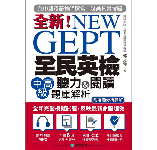 .《NEW GEPT全新 全民英檢中高級 聽力&閱讀題庫解析》(國際學村出版)