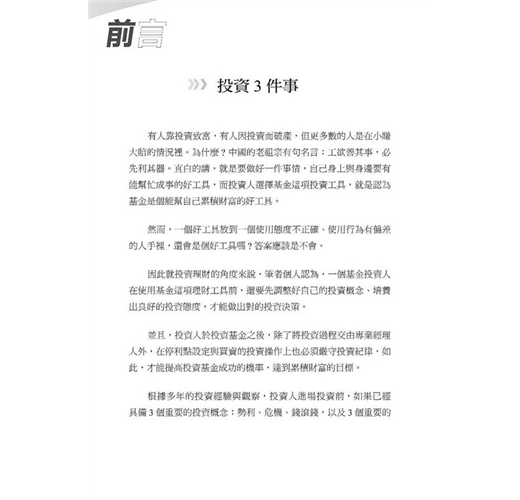 說起基金的投資,一般人的觀念是買後不理。沒錯這不失為一個輕鬆的理財方法。不過,基金其實有更積極的超作方式,可以讓你享受更高的投報率。本書教你如何用簡單的指標找到具有上漲潛力的基金。而基金和任何投資標的一樣,價格總是上下起伏,低進之後,自然要高出,然後再找下一個有潛力的投資標的。