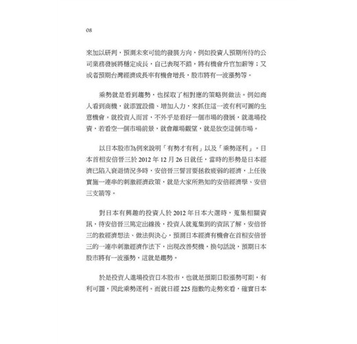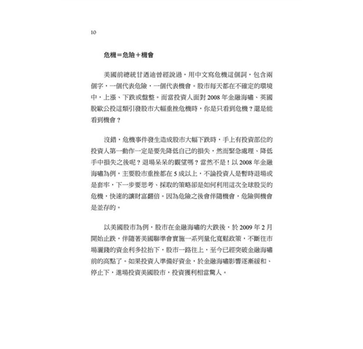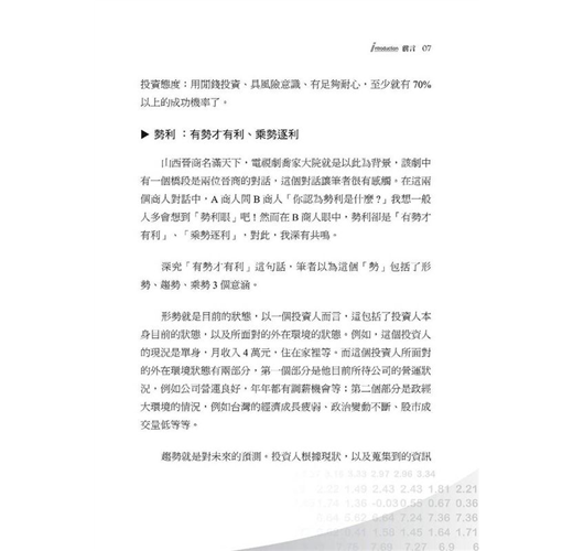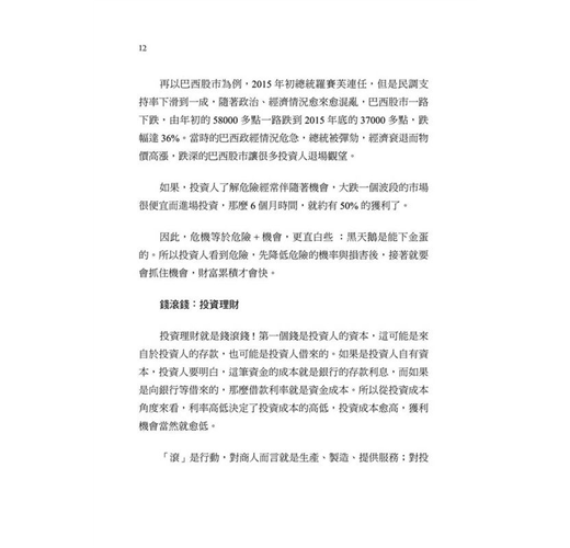 作者用大量的實例說明投資的方法,讓你身歷其境,好像跟著她一起經歷過那些事件,進行投資決策。快速的培養你投資的直覺。