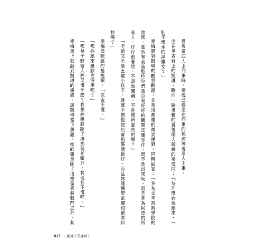 凱琳上前拍拍伊吉的背,「就是這樣老娘才不想繼續待在艾達城,因為很無聊,到處都是書呆子和有的沒有的規矩,讓老娘覺得很煩。」