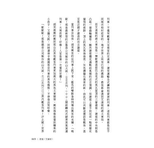 當列車靠站後,胡芙興奮的從列車上跳下來,藍色的雙眸登時閃爍出興奮的光輝,「嗚歐!那是最新型的古魯菲公司製作的山火級,4000系列,4-8-8-4關節轉向式碳素蒸氣貨運列車,大男孩號!好棒!人家是第一次看到實體!」