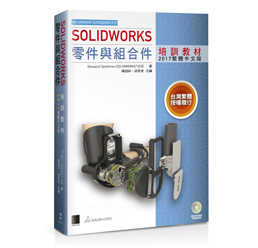 SOLIDWORKS零件與組合件培訓教材<2017繁體中文版>是依據DS SOLIDWORKS公司所出版的《SOLIDWORKS 2017:SOLIDWORKS Essentials》編譯而成的書籍,本書著重於介紹使用SOLIDWORKS軟體建立零件、組合件的基本方法和相關技術,以及產生工程圖的基礎知識。