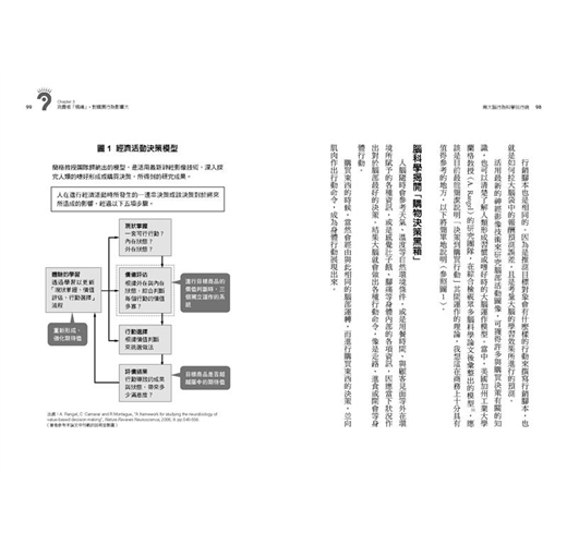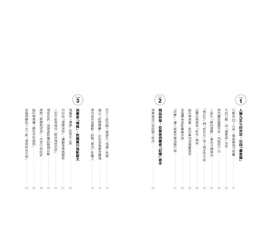其他諸如「得失認知偏差」,是決定售價和消費者「預測報酬」的重要機制,而大腦有三大價值評估系統,會在「決策黑箱」中互相影響,商品要有人氣、要長紅不敗,就要同時滿足這三大系統。