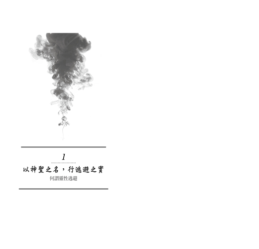 「若想穿越當代靈性學的泥沼,就必須願意毫不留情、誠實面對自己,並發揮敏銳的辨別力,因應當代靈性學可見與不可見的挑戰。馬斯特斯以做學問的嚴謹態度,加上得之不易的洞察力以及高超的情緒智商,探討『靈性逃避』的許多面向。本書字字珠璣、說理清晰,對於修行路上的新手或老手,都是一本實用指南。」 ——瑪麗安娜‧卡普蘭博士(Mariana Caplan, PhD),《睜大雙眼:在修行路上培養明辨力》(Eyes Wide Open: Cultivating Discernment on the Spiritual Path)、《登頂途中:過早聲稱悟道之誤》(Halfway Up the Mountain: the Error of Premature Claims to Enlightenment)作者
